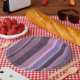 Mauve vertical stripes paper plate