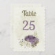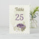Beautiful romantic table number card featuring mauve and white flowers and some pretty green leaves .