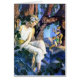 Maxfield Parrish's Fair Princess and the Gnomes. A magical fantasy image of a fairy princess chatting with three gnomes in the dark forest.