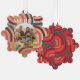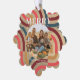 This retro, maximalist, kitsch, and modern "Merry Christmas" Christmas holiday photo paper ornament card features a faux/fake gold background with geometric patterns. The reverse side features a red background with geometric patterns. Personalise it for your needs. You can find matching products at my store.