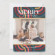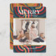 This retro, maximalist, kitsch, and modern "Merry Christmas" Christmas holiday card features a teal background with geometric patterns. The reverse side features a mustard yellow background with geometric patterns. Personalise it for your needs. You can find matching products at my store.