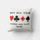 Wish you fellow bridge partner happy thoughts with this bridge attitude throw pillow featuring the four card suits along with the saying "May All Your Finesses And Slams Make". Make others do a double-take at the bridge table with a dose of good wishes for excellent bridge play with this memorable bridge saying throw pillow! Excellent encouragement advice for any bridge player!