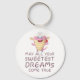 An image of a funny pink dragon with a lollipop in its hand. The friendly-looking creature wishes good to you: "May All Your Sweetest Dreams Come True" colorful marshmallow made text under the image. Beautiful, elegant round keychain. You can change the color of the background. Please, use the "Edit Design" button to make all the changes you may need.