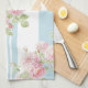 May Day Summer Roses aqua stripe Tea Towel