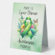 I ordered a number of items from Zazzle and all of them are wonderful. This table tent sign is more durable and professional than I expected. It’s not just a heavy cardboard tent. It has the feel and weight of durable plastic and will make a wonderful keepsake for the new mom! I highly recommend this product. .