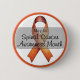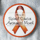 At the centre, a bright orange awareness ribbon takes focus, representing the fight against spinal cancer and the push for research and better treatments. A bold orange border frames the button, creating a polished and eye-catching design.