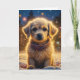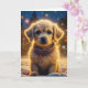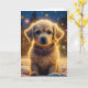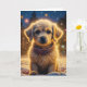 Cute puppy dog outside on a snowy night personalised Christmas card.