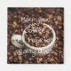A close up photo of a coffee cup full of coffee beans and a funny quote "May your coffee kick in before reality does"