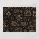 Mayan glyphs and ornaments pattern -gold on black postcard
