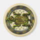 An ancient Mayan symbol showing a turtle-like creature textured in green and gold metal, sitting on a metal net held by a metallic ring in pitted, green and gold metal. The perfect design for lovers of ancient Mayan, Aztec and Mexican art.