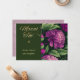 This is a customisable card for the birth of a baby girl. Edit the text to add your own personalised message. The card features beautiful large purple flowers on a dark green background. The words Mazal Tov (Hebrew for Congratulations) is featured in gold tone lettering with a Star of David. The back of the card features elegant lettering, and a calligraphy leafy flourishing vine, on a dusty pink damask background.
