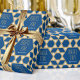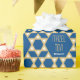 Send your congratulations with this 'Mazel Tov' personalised gift wrap. Perfect for family and friends to celebrate many different occasions, including Hanukkah, Bar Mitzvah, Bat Mitzvah, birthdays, weddings, graduations, new home, new job and more! A stylish design featuring a Star of David geometric pattern in blue, white and gold colour.