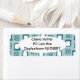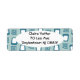 These return address labels have a mid-century modern design of alternate rectangular mazes and rounded trapezoids in shades of teal.