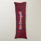 Great long body pillow done in the classic Scottish red, blue, green, brown, purple clan MacDougall tartan plaid pattern. Personalise the bold white text, on the front, to read what you want.