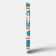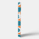 This phone case has a mid-century modern design of open orange circles with solid teal circles running across the pattern with teal vertical lines and orange horizontal lines.