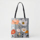 Orange, scarlet, white, and very pale pink flowers show up beautifully on a grey, mixed media background. Resembles a mid-century modern floral design from the 1950s or '60s. Retro, and very stylish!