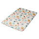 Add a touch of glamping comfort to your home, travel trailer or cottage nest with this mid-century pattern style bath mat. Created in a retro abstract flower and leaves pattern in shades of orange and teal blues with with striking black accents. See the matching shower curtain and more items in this design collection at Camp and Cottage on Zazzle.