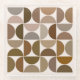 Mid-century Modern style design in a mix of brown and cream colour semicircles on a cream colour background.