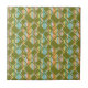 This ceramic tile has a mid-century modern design of rounded green rectangles with holes on a background of stripes in mid-century modern colours. If you like the design but prefer different colours, message me.