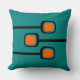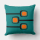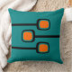 Retro print mid-century modern throw pillow in teal and orange. Add some instant retro style to any bedroom, living room, den or patio. Select from a variety of indoor or outdoor fabrics. This modern throw pillows will look amazing on your bed, sofa or chair.