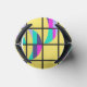 This can cooler has a mid-century modern design of crescent moons divided horizontally into three colours, pink, blue, lavender, or seafoam, split in half and scattered on a grid with a yellow background. If you like the design but want different colours, message me.
