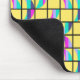 This mouse pad has a mid-century modern design of crescent moons divided horizontally into three colours, pink, blue, lavender, or seafoam, split in half and scattered on a grid with a yellow background. If you like the design but want different colours, message me.