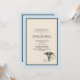Share your pride in achieving your medical degree with this attractive invitation/announcement. The subtle blue border frames the fawn-coloured centre and features a Caduceus symbol and a stethoscope.