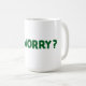 Keep it lighthearted with this coffee mug featuring the fun and quirky "Me Worry?" text. Perfect for adding a dash of humour to your coffee routine, this mug is ideal for those who embrace a carefree attitude.