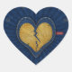 Me-you broken leather and jeans fabric heart sticker