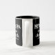 Featuring clean white lettering on a black ceramic mug, the phrase