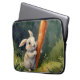 Add a touch of charm to your workspace with this whimsical watercolor bunny electronics bag cover for your laptop. Featuring an adorable bunny holding a large carrot and standing in a lush meadow surrounded by a green forest, this protective laptop sleeve is perfect for nature lovers and those who appreciate playful, artistic designs.