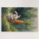 Bring a touch of charm and whimsy to your puzzle collection with this delightful Whimsical Bunny Meadow Puzzle. Featuring a beautifully detailed watercolor bunny clutching a large carrot, this enchanting scene is set in a lush green meadow, surrounded by a serene forest.