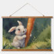 Bring a touch of woodland charm to your space with the Meadow Bunny Bliss Whimsical Watercolor Wood-Topped Tapestry, featuring a beautifully detailed watercolor illustration of an adorable bunny holding a large carrot, standing in a sunlit meadow surrounded by a lush green forest. The delicate brushstrokes and soft pastel hues create a dreamy, storybook-like feel, making it a perfect addition to nurseries, living rooms, or cosy reading corners.