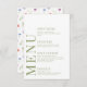 Elevate your classic wedding celebration with an exquisite and simple menu card. Showcasing a delicate pattern of colourful meadow wildflowers, this refined design is enhanced by a personalised touch—the bride and groom names on the back, adding a memorable and distinctive element to your special day.