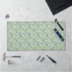 Add a little cheer to your work with a whimsical, hand-painted watercolor floral patterned desk mat, featuring playful blue, orange and yellow daisy blooms dancing on a mint green background.