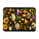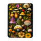 Artistic magnet featuring colourful flowers, mushrooms and butterflies that one might find in a lush meadow in the Spring. Botanical digital painting in a modern Haeckel style.