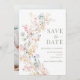 Indulge in sophistication with our refined rustic fall Save the Date photo invitations. Featuring a delicate whimsical wreath of pastel meadow flowers, these unique invitations elevate the anticipation for your wedding. Perfect for adding a touch of elegance and charm to your special day.