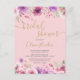 Meadow flowers floral bridal shower invitation featuring pink and lilac watercolor floral garlands that frame your bridal shower details on a pretty pink background. Designed by Thisisnotme©