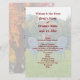 Add your autumn wedding information to this beautiful card. All text is adjustable to move, resize, and change the font and colour. Convert this for any occasion. In the middle of the meadow sits a white antique-looking table with chairs. On top of the table is a flower pot with red flowers. In the background are the trees that are starting to change with the early fall. The back side has the autumn leaves from a changing tree.