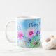 Create your own one of a kind custom mug. A floral design with a meadow of gorgeous colourful pink, white and purple wildflowers set against a beautiful background of blue sky and fluffy white clouds. Would make a lovely custom gift from the heart just for her on Mother’s Day! Personalise/customise your mug with your own words. Delete the sample text and easily add your own in many available font styles and colours. Position the text anywhere. You can also purchase as is with the sample text “Happy Mother’s Day!” or without any text. For more info click on links below.