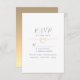 Simple, minimal, modern, elegant dusty blue wedding RSVP card with meal choice, gold rope heart and trendy handwritten script.
