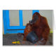 Wildlife photography notecard shows orangutan mother and baby on the island of Borneo. It was night time in the midst of the rain forest when this orangutan mother brought her son to the porch to enjoy some of our fruit. 100% of the artist's profits from this item are donated to Orangutan Foundation, where the artist is a volunteer with orangutan orphan rescue and rehabilitation.