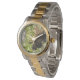 Very good quality watch that looks good whether dressing up or down. The band is sturdy. The watch is rather large so might not work for smaller folks. Recommended as a good gift. Printing is just a touch light but adds a nice touch of personalization.