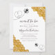 This Meant to Bee Bridal shower invitation has watercolor honeycombs and sweet little bumblebees making heart shapes as the fly.