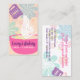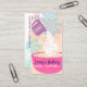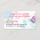 Super girly vibe on this baking or bakery business card featuring a measuring cup pouring splashing liquid into a mixing bowl, perfect for cake, cupcake and cookie bakers or cooking classes, personal chefs and other culinary pros.