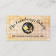 Splashy measuring cup with measuring spoons, monogram and floury plaid background on these business cards for a home bakery, cake baker, or other baking, cooking, or culinary business.
