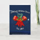 Gaeilge Christmas Card from County Meath . The front of this beautiful card carries the phrase "Nollaig Shona Duit" (Happy Christmas to you) and the gaeilge translation of Meath . The traditional red Christmas bow and holly are placed with the official emblem of Ireland, the Irish Harp.
