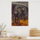 Mech robot out side a building on a alien planet, inspired by style of Edvard Munch. This is a AI generated art piece.