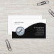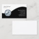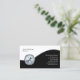 This mechanic automotive and transport business card features black and white segments separated by a wavy chrome strip. An elegant gold bordered icon of a spanner and screwdriver lies on the lower left side of the design, that's generally suited to automotive, transport, transportation, car, car service, car repair, auto garage, mechanic, elegant themes. You can personalise this card immediately with your name and details.