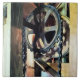 Designs by Susan -- Image of a drive chain and sprocket gear in a grist mill. I liked the geometric shapes of the round gear and the rectangles of wood and the interesting shadow of the gear.